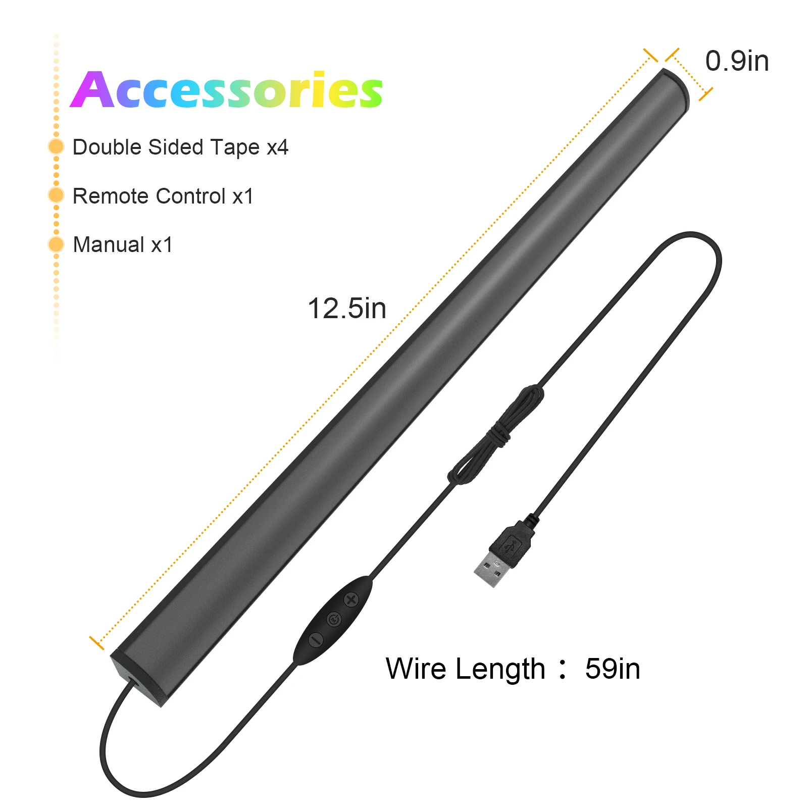 Remote Control & Easy Operation -- Have 2 ways to control the under monitor light bar. You can use the switch on the light to control on/off and change mode. Also can use the wireless remote controller to change the Color, Mode, Speed and Brightness. One remote can control several monitor light bars in the same time.