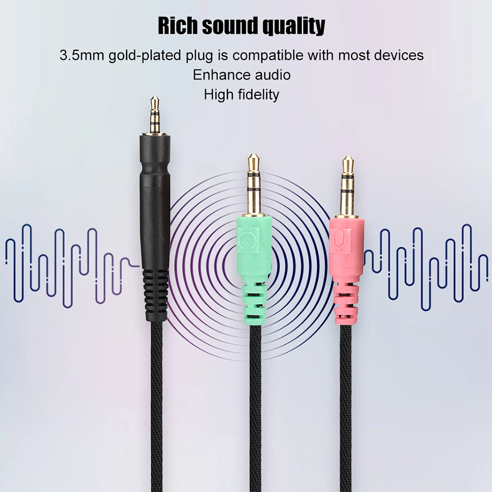 5. 3.5mm gold-plated plug is compatible with most devices on the market, enhancing audio, with high fidelity.