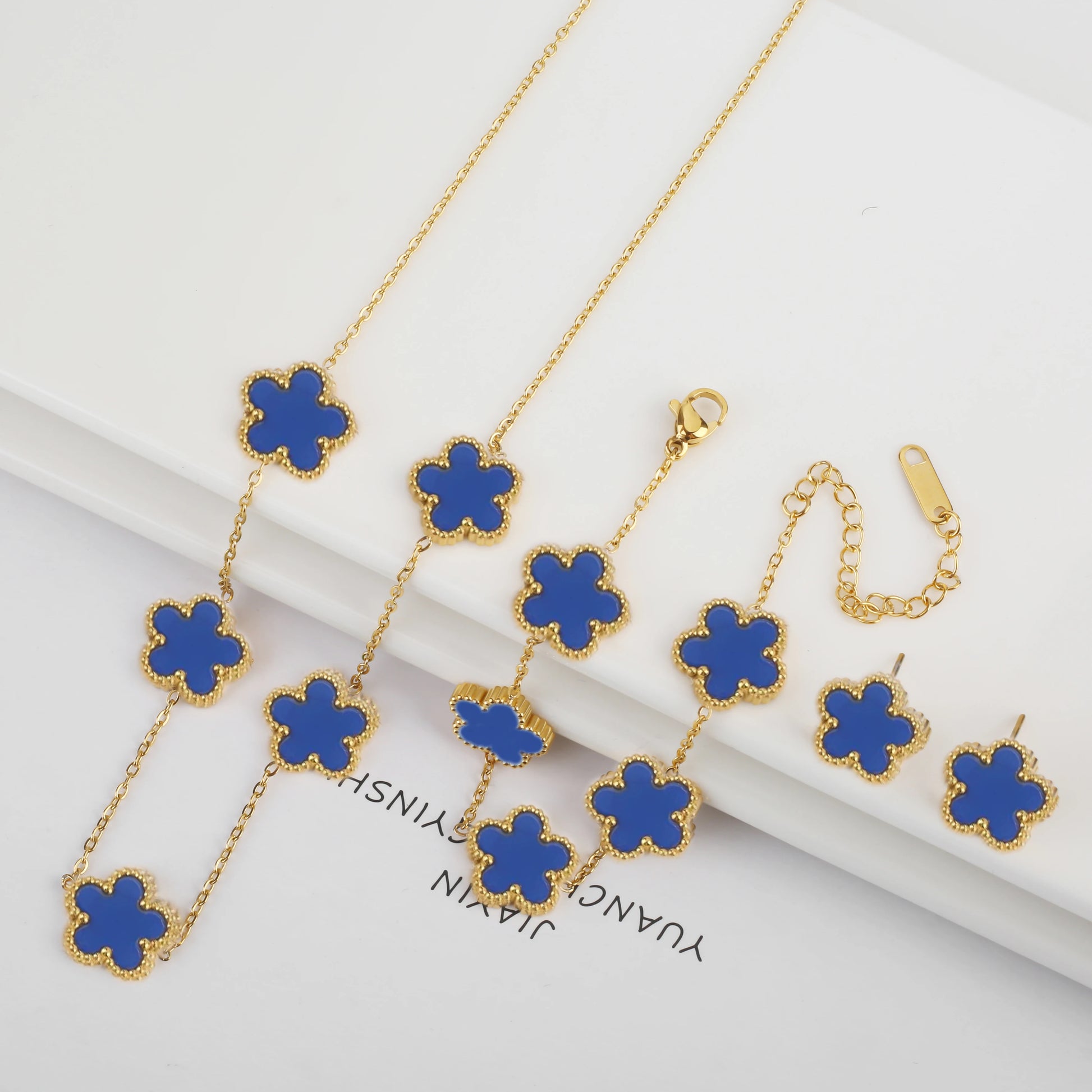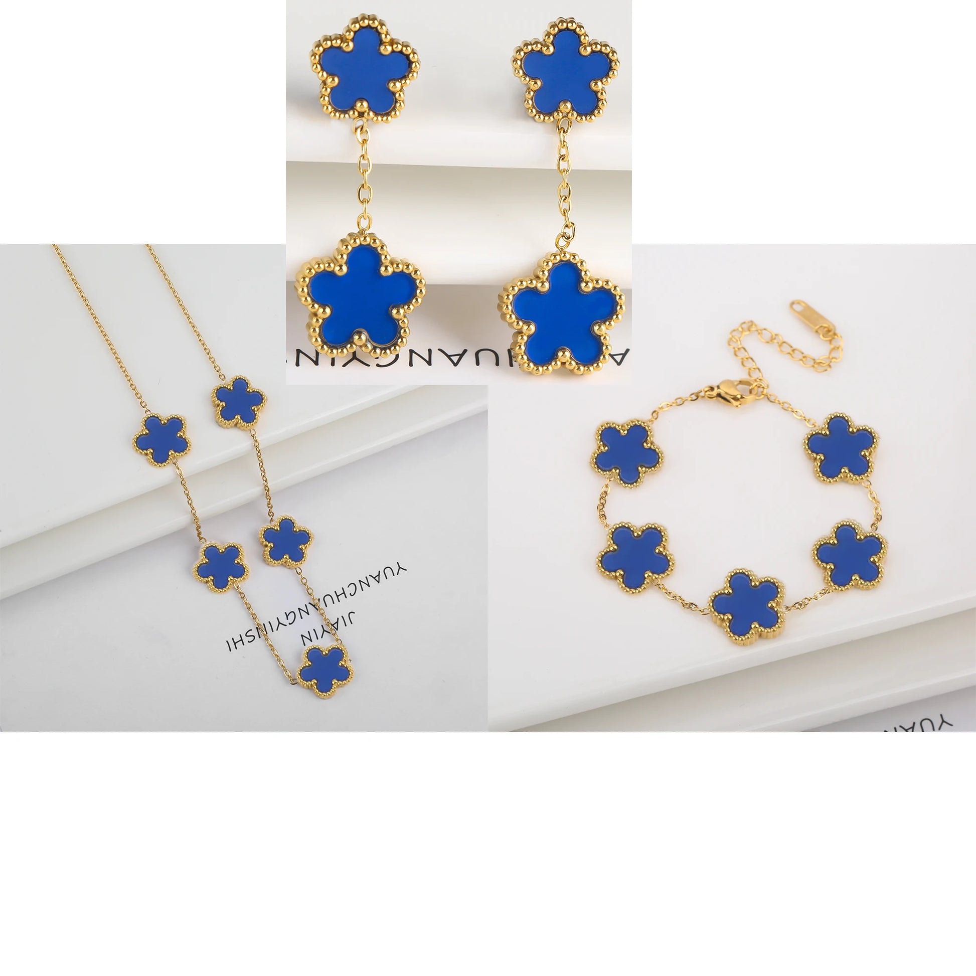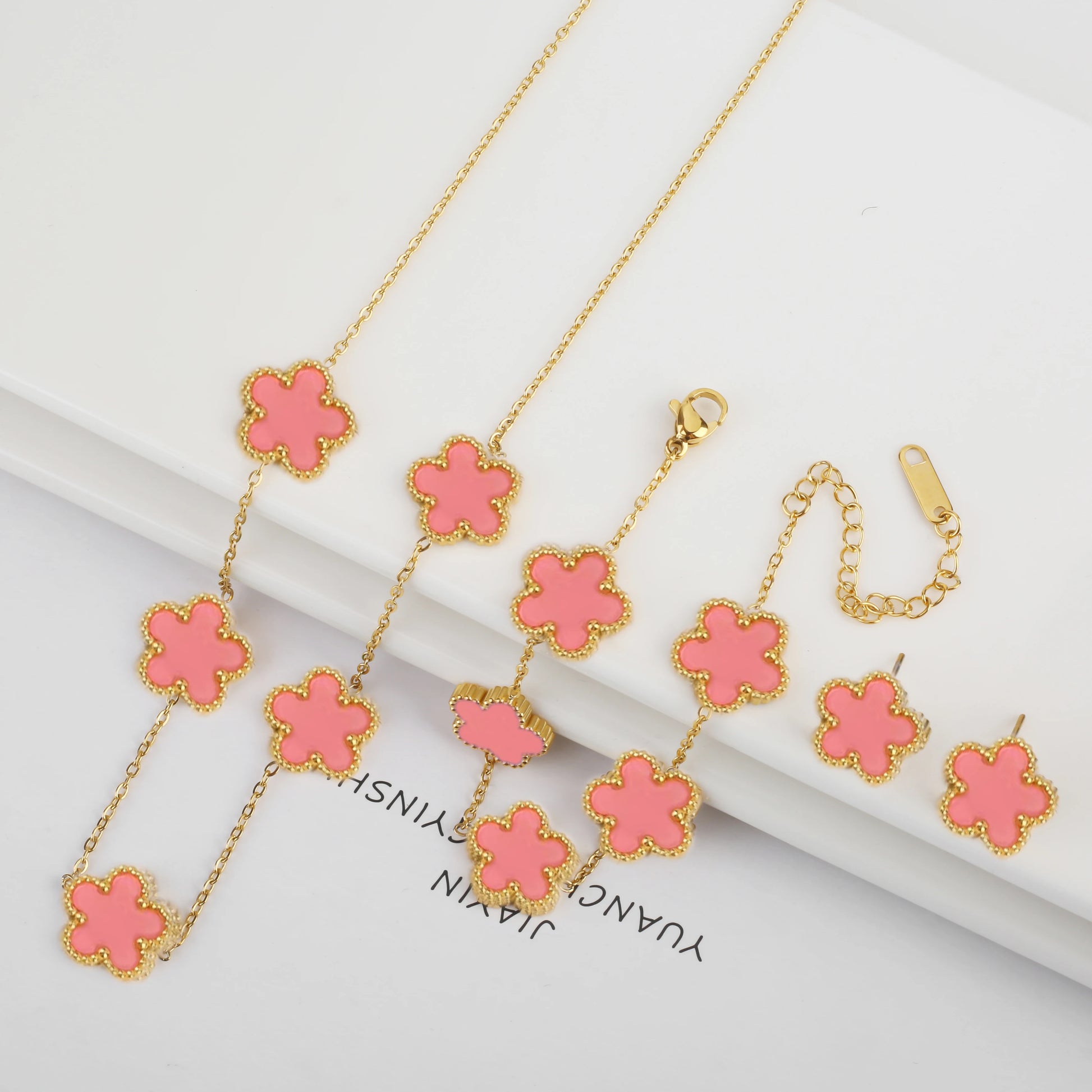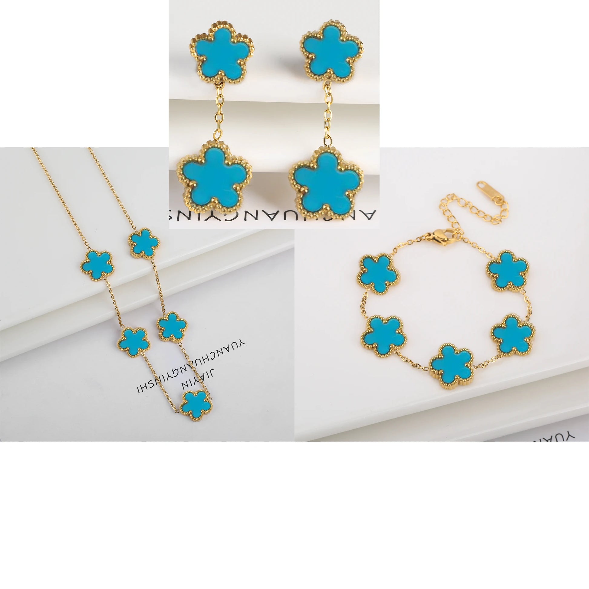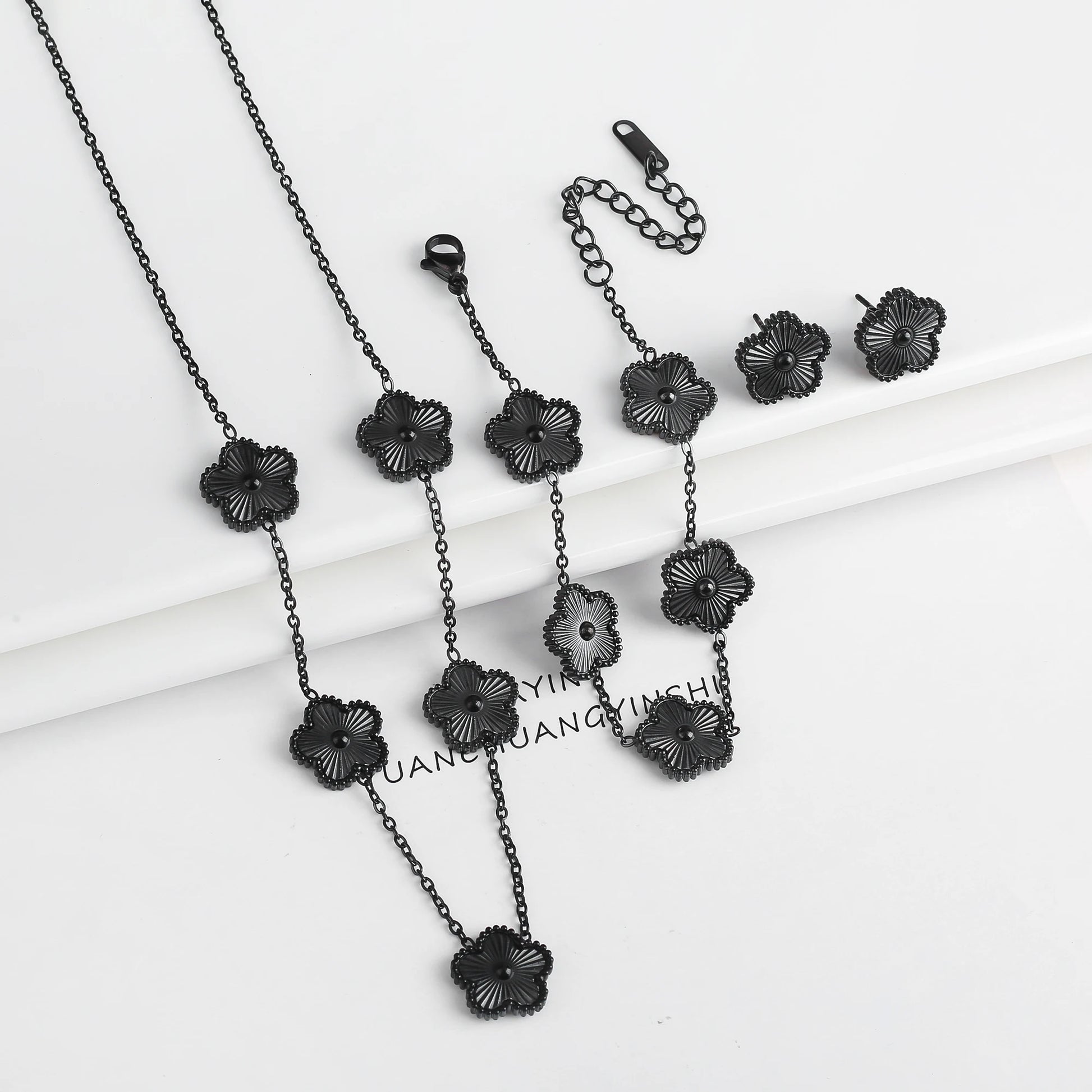 Name: New Trend Five Leaf Flower Stainless Steel Jewelry Set Bracelet Necklace Earrings Classic for Woman Party Luxury Jewelry Clover