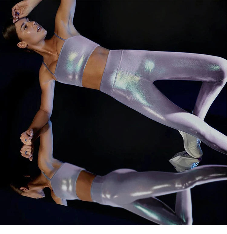 Women Liquid Purple Sport Leggings High Rise Stretchy Fitness Gym Wears Compressive Breathable Push Up Iridescent Activewears