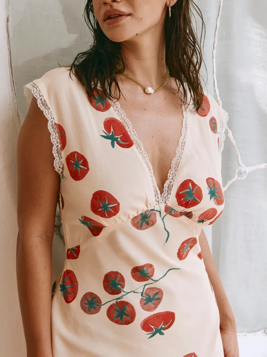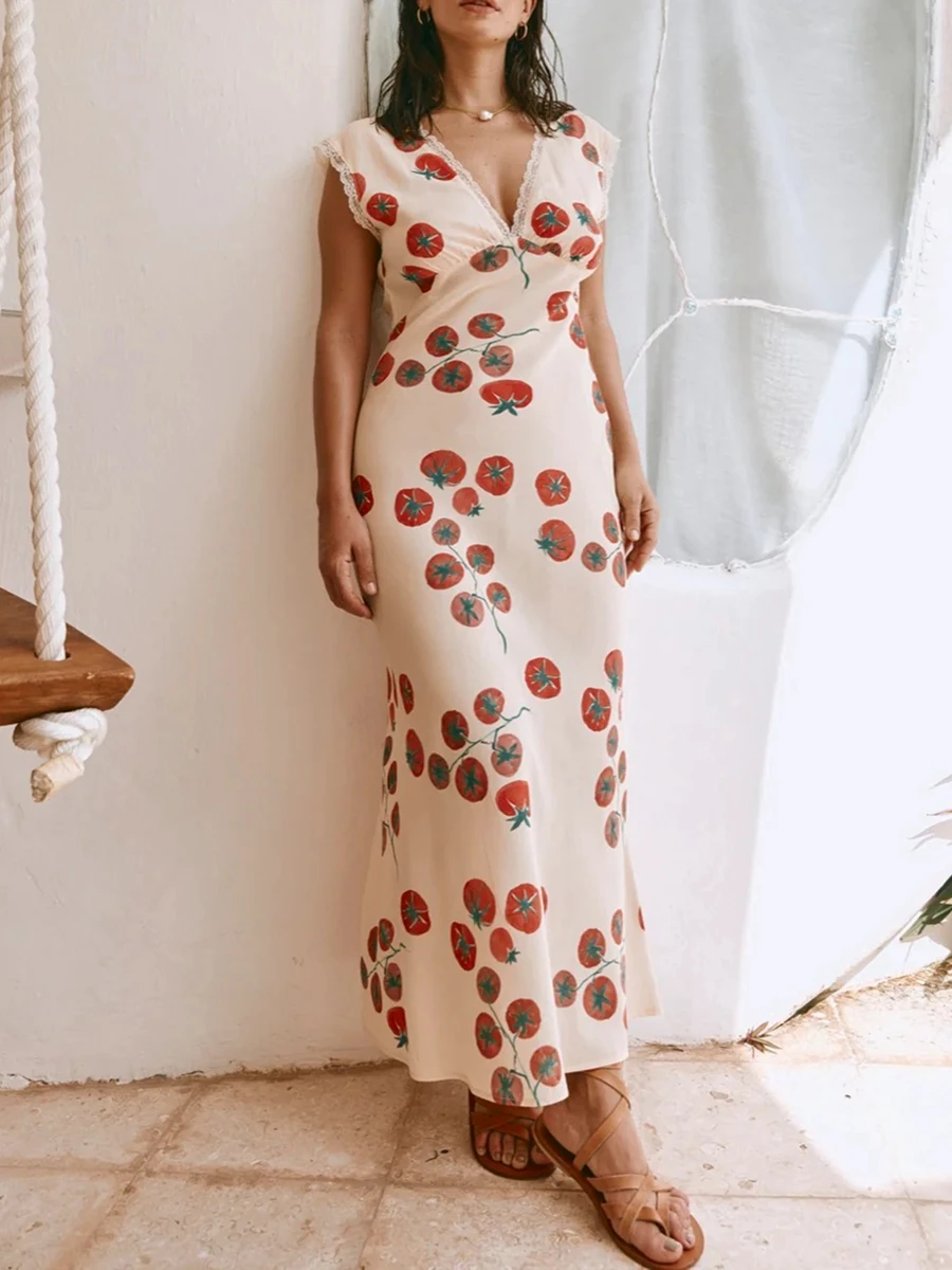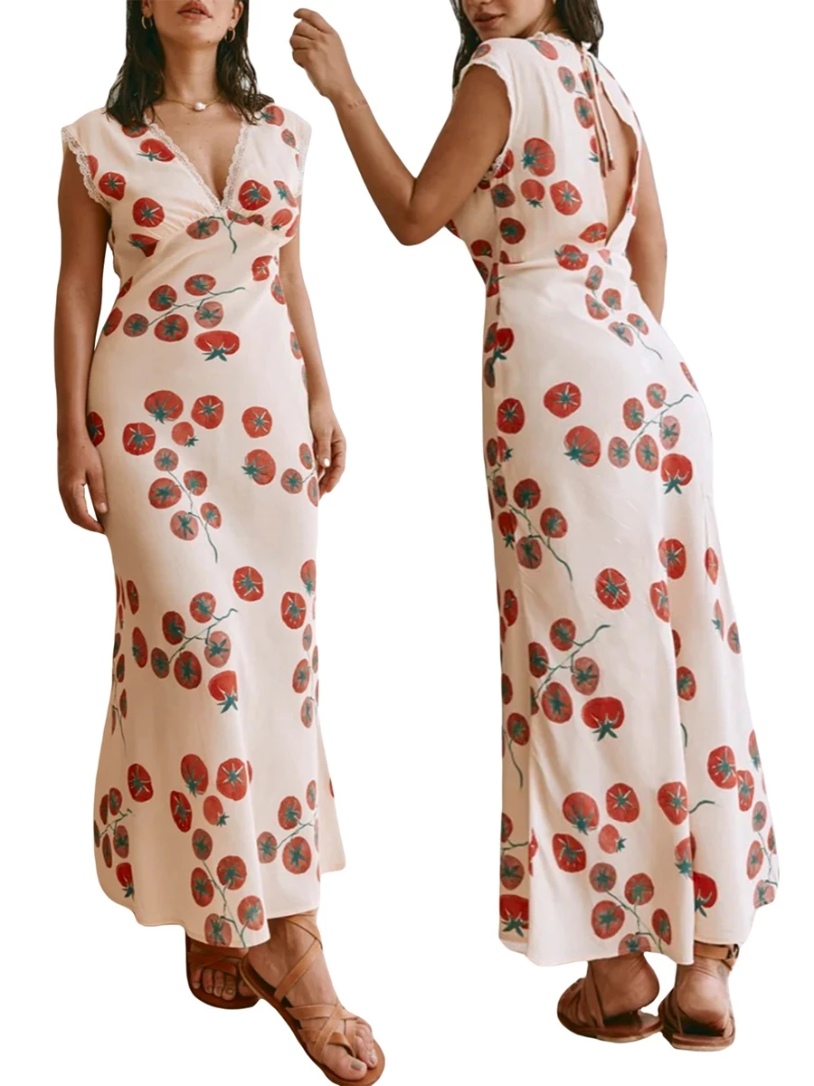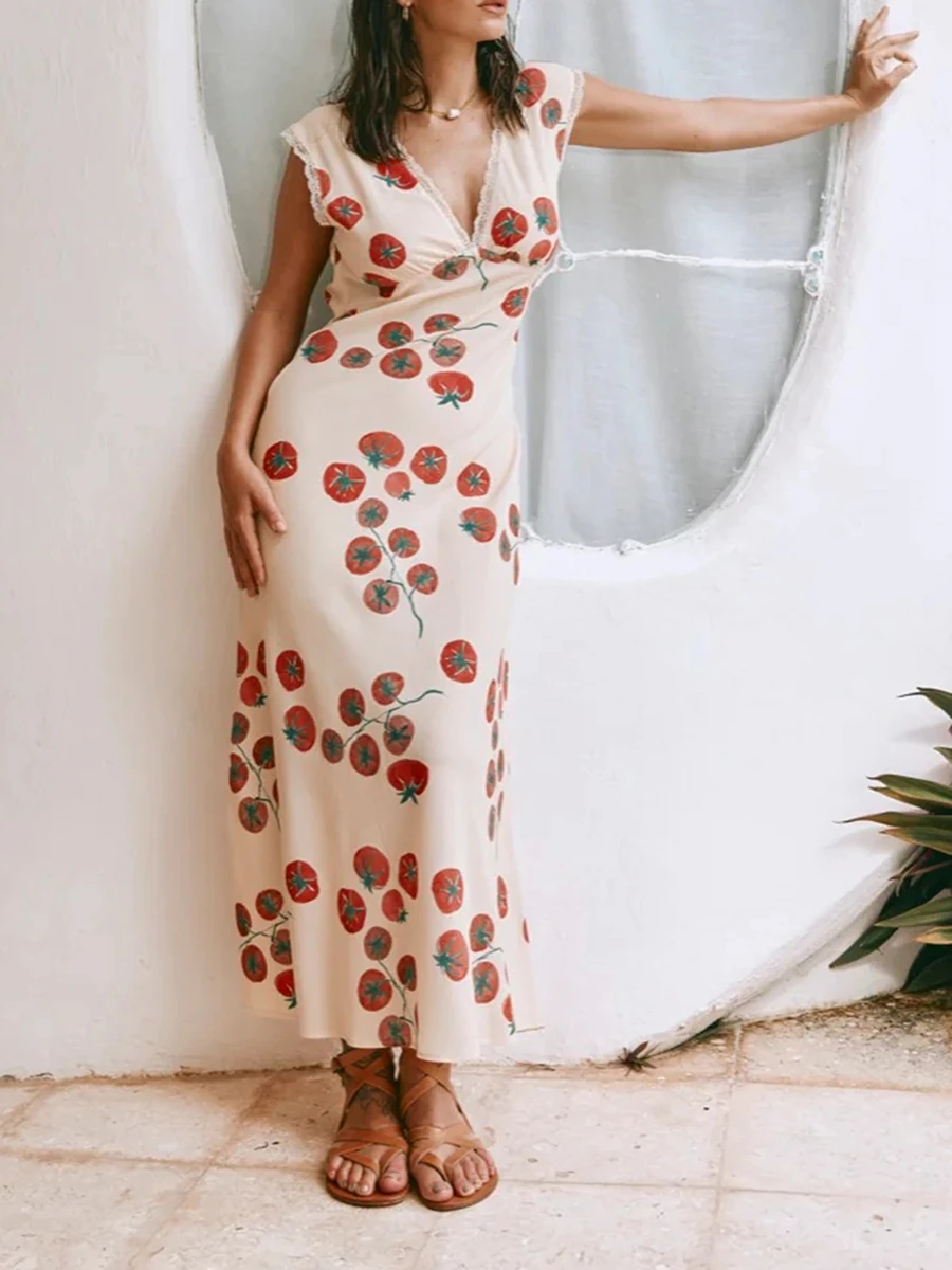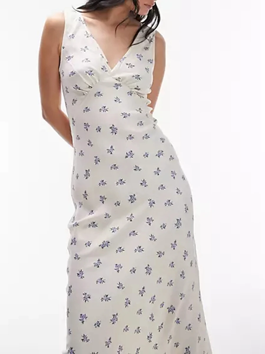 Women's Long Slim Tank Dress Summer Sleeveless Open Back Deep V Neck Floral Print Dresses